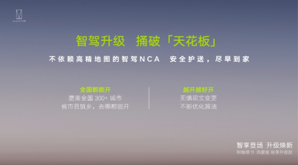 伴隨著阿維塔11鴻蒙版智享升級款的上市,阿維塔“去高精地圖化”智駕時(shí)代正式開啟,打破“按圖索驥”束縛,完美彌補(bǔ)當(dāng)下高精地圖智駕方案的不足并解鎖更多高頻智駕場景,城區(qū)NCA智駕功能即將一次性解鎖超過300個(gè)城市,帶來“全國都能開、 全國都好開”的出行體驗(yàn)。