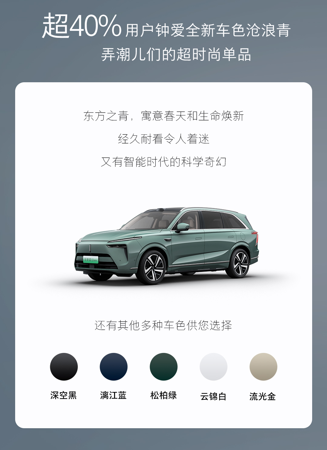 魏牌全新藍(lán)山不僅在智能配置上引領(lǐng)潮流,在外觀設(shè)計(jì)上同樣備受青睞。40.64%的用戶選擇全新車色“滄浪青”?!皽胬饲唷奔橙〕嗟谰扌秃@吮魂柟庹凵滹@露的青色,給人無限的美妙的想象,在大自然的饋贈(zèng)下,深度融合Coffee GPT靈感設(shè)計(jì),這種獨(dú)特的藍(lán)色象征著春天的生命力,同時(shí)賦予車輛充滿未來科技感的視覺享受。