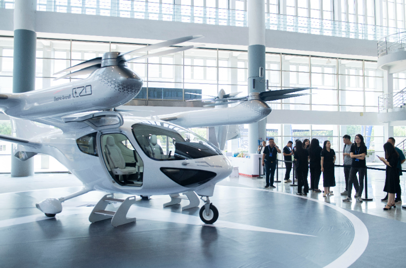 9月6日,觀眾在2024低空經(jīng)濟發(fā)展大會創(chuàng)新成果展區(qū)了解一款電動垂直起降飛行器。新華社記者 傅天 攝