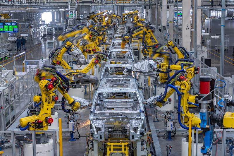 (資料圖片)在位于重慶兩江新區(qū)的賽力斯超級工廠,焊裝車間生產(chǎn)線上的機器人在精準(zhǔn)執(zhí)行作業(yè)指令。新華社記者 黃偉 攝