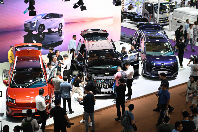 (資料圖)10月15日,第136屆廣交會(huì)上廣汽集團(tuán)的新能源汽車(chē)展臺(tái)吸引參觀(guān)者。新華社記者 鄧華 攝