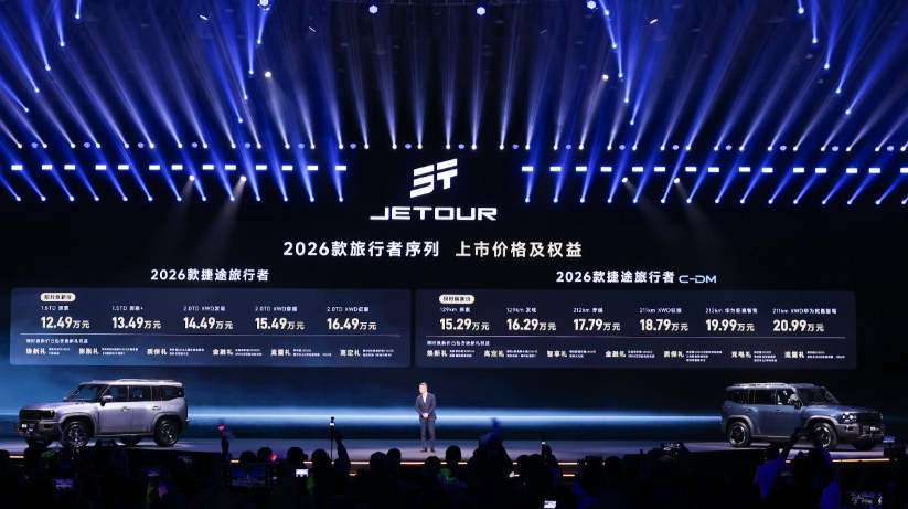 央廣網(wǎng)北京11月18日消息(記者董楠)11月17日,“旅行者之夜暨捷途汽車第四屆旅行+大會”于北京雁棲湖國際會展中心舉行。此次捷途發(fā)布了旅行者系列兩大核心車型——2026款捷途旅行者與捷途旅行者C-DM,發(fā)布會上,奇瑞汽車股份有限公司常務副總裁張國忠表示:“七年前,行業(yè)競爭日趨同質化,捷途選擇了一條與眾不同的起跑線——聚焦‘旅行+’生態(tài)。捷途洞察到,汽車不僅是交通工具,更承載著用戶對自由、對探索、對新生活的向往。捷途堅信,在看似飽和的紅海之旁,總有通往用戶內心的藍海?!?/p> 本屆大會上,捷途汽車正式宣布:旗下“旅行越野SUV”捷途山海T2,正式更名為“捷途旅行者C-DM”。 此次活動上2026款捷途旅行者和捷途旅行者C-DM正式上市。2026款捷途旅行者,限時煥新價12.49萬—16.49萬元,并提供6重購車好禮,捷途旅行者C-DM,限時煥新價15.29萬—20.99萬元,提供7重購車好禮。