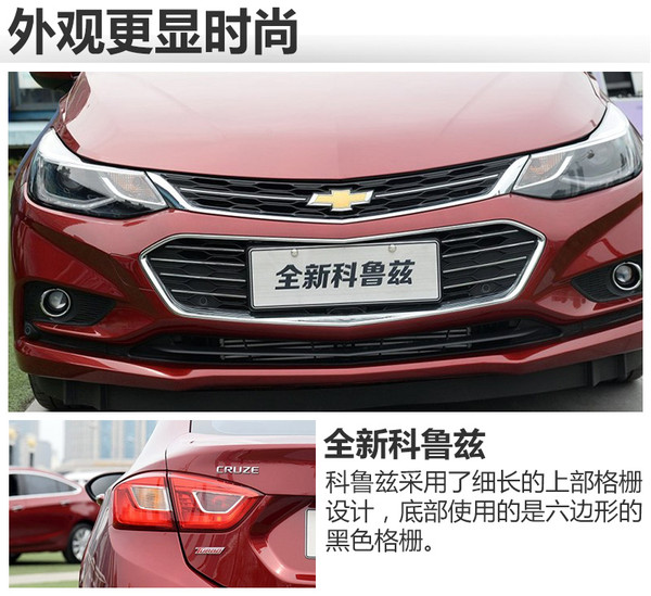 外觀方面,科魯茲采用細(xì)長的上部格柵設(shè)計(jì),底部使用的是六邊形的黑色格柵。側(cè)面來看新車緊湊有力,雙腰線設(shè)計(jì)線條比較復(fù)雜,花瓣式輪圈也很時尚。新車尾部線條比較豐富,很有棱角,牌照區(qū)域也采用六邊形設(shè)計(jì),后尾燈組內(nèi)部結(jié)構(gòu)采用雙環(huán)形分離式尾燈,與邁銳寶XL設(shè)計(jì)風(fēng)格一致。