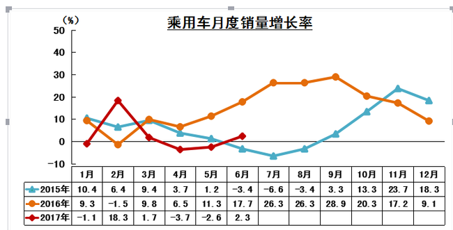 2017年6月乘用車品牌銷量前十位排名 單位:萬輛、%