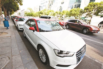 今年6月,北京CBD地區(qū)停放的EZZY分時租賃奧迪A3轎車 供圖/視覺中國