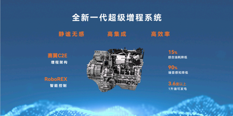 在2024年廣州車展上,全新一代賽力斯超級(jí)增程系統(tǒng)正式發(fā)布,該系統(tǒng)基于“賽翼(C2E)增程架構(gòu)”與“RoboREX智能控制技術(shù)”打造,實(shí)現(xiàn)了靜謐無(wú)感、高集成、高效率三大行業(yè)領(lǐng)先優(yōu)勢(shì)。