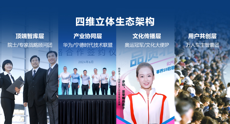 “品牌摯友計(jì)劃”是北汽集團(tuán)“品牌三年躍升行動(dòng)”的重要引擎,構(gòu)建一個(gè)“四維立體生態(tài)”:頂端智庫(kù)層,邀請(qǐng)?jiān)菏俊?zhuān)家、經(jīng)濟(jì)學(xué)家組成戰(zhàn)略顧問(wèn)團(tuán);產(chǎn)業(yè)協(xié)同層,與華為、寧德時(shí)代等合作伙伴共建技術(shù)品牌聯(lián)盟;文化傳播層,攜手奧運(yùn)冠軍、文化名人打造"美好出行大使"IP;用戶(hù)共創(chuàng)層,建立萬(wàn)人級(jí)車(chē)主智囊團(tuán)。除了外部資源,品牌摯友計(jì)劃還將逐步拓展至20位內(nèi)部管理者及300名KOE員工。