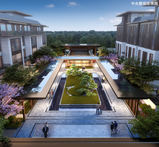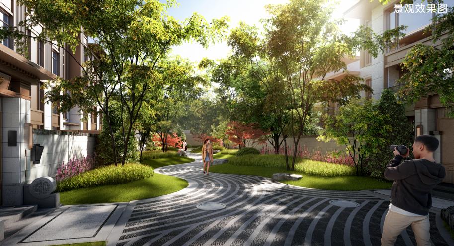 項目整體景觀設計以山林水源,禪意大宅為主線,將江南園林與皇家園林相結合,形成前府后院的園林形態(tài),景觀采用四級九景,四重栽植的造園手法,點綴了九個院落,四十個景點。園林鋪裝精致而具有設計感,在細節(jié)中加入特有的重視吉祥紋樣,更突出了新中式園林的設計風格。