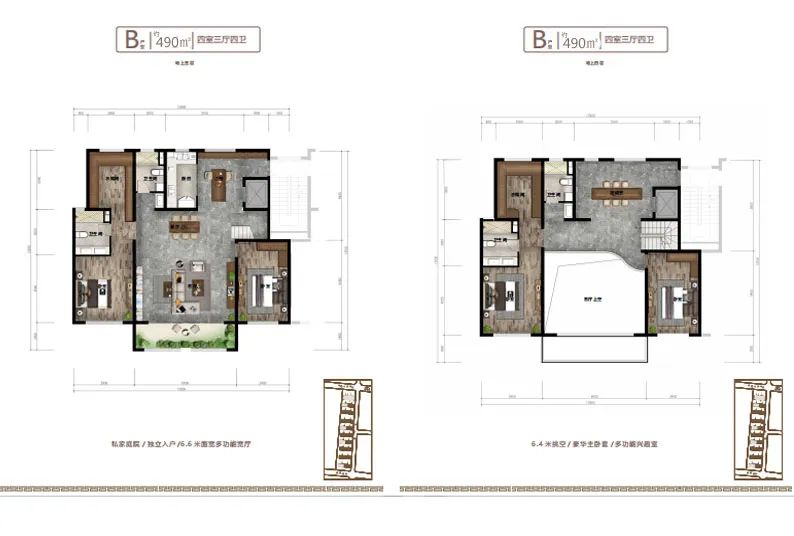 項目主打聯(lián)排疊墅戶型設計,疊墅是低密度住宅,樓距寬,樓棟密度小,保持有一定的私密性,每戶擁有私家獨立庭院,及私家花園露臺,庭院入戶,室內(nèi)層高3.2米,每戶設有私家電梯可以直達室內(nèi)任一層及空中露臺,地下室和私家車庫。客廳開間6.6米,層高挑空6.4米的設計(挑空部分不計算面積),另外挑空部分可以根據(jù)業(yè)主需求,自行設計,可以增加一個約40平米的起居室。