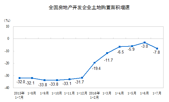1-7月份,房地產(chǎn)開(kāi)發(fā)企業(yè)土地購(gòu)置面積11167萬(wàn)平方米,同比下降7.8%,降幅比1-6月份擴(kuò)大4.8個(gè)百分點(diǎn);土地成交價(jià)款3848億元,增長(zhǎng)7.1%,增速回落3.1個(gè)百分點(diǎn)。
