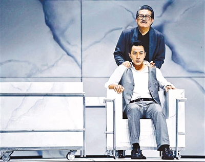 舞臺(tái)上,導(dǎo)演用最簡(jiǎn)潔但也是最考驗(yàn)演員的方式呈現(xiàn)了這個(gè)并非線性敘述的“故事”,摒棄了花哨的舞臺(tái)手段,回歸最本真的表演時(shí),史可、劉愷威、何賽飛等人面臨的其實(shí)是最極致的舞臺(tái)表演。