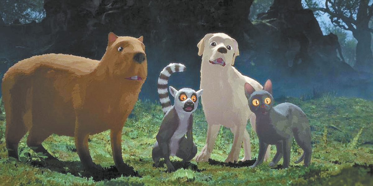 除此之外,片中一切的動(dòng)物形象及發(fā)聲,都來自導(dǎo)演金茲持續(xù)多年的認(rèn)真研究。這位拉脫維亞導(dǎo)演作為一名貓狗雙全的“鏟屎官”,自然熟知小黑貓和拉布拉多犬的習(xí)性;而卡皮巴拉、環(huán)尾狐猴和蛇鷲的神態(tài)、行為和聲音,則全部來自他守在動(dòng)物園的觀察記錄。導(dǎo)演本來還打算將現(xiàn)實(shí)中鯨魚的素材轉(zhuǎn)入blender(一款免費(fèi)開源三維圖形圖像軟件)進(jìn)行渲染,但后來還是沒忍住加了些人為設(shè)計(jì),將其更加神秘化了。