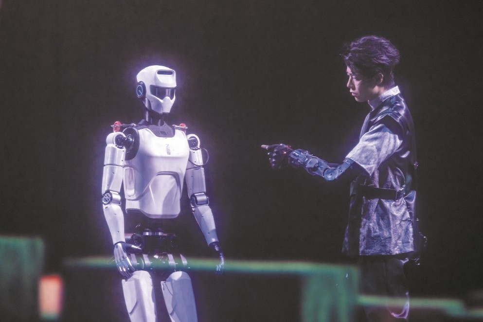 這是發(fā)生在中國大戲院長三角城市戲劇節(jié)中的最“科幻”一幕,國內領先的機器人走出實驗室和展廳,以接地氣、親和的方式來到普通人身邊。面對這樣的場景,人們不再那么陌生——2025春晚上,張藝謀導演的《秧BOT》讓人形機器人略顯滑稽地扭起秧歌;上半年,半程馬拉松也迎來人形機器人“跌跌撞撞”的身影?!拔覀冊谔剿饕环N可能性,試著模擬發(fā)生在未來的場景?!薄毒尬镏恰匪囆g總監(jiān)、上海戲劇學院藝術科技與管理學院副院長沈倩對記者說,“無論對于機器人還是演藝產業(yè)來說,都具有破圈的意義?!闭\然,機器人仍在亦步亦趨地努力跟上人類的節(jié)奏,但其不斷前進的腳步已經令人激動。面對“人機共生”的時代命題,上海邁出了全國舞臺實踐的第一步。