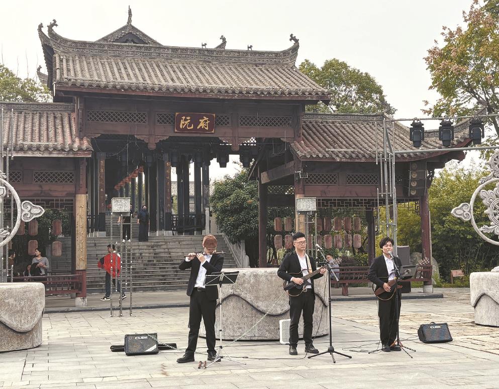 演藝新空間向外擴展,蕪湖鳩茲小鎮(zhèn)內,上海街藝音樂組合正在演出。文匯報記者 孫彥揚攝