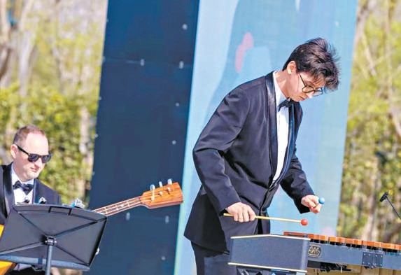奧西波夫國(guó)立模范青年獨(dú)奏家民族室內(nèi)樂(lè)團(tuán)在綠心露天劇場(chǎng)演出。記者方非 攝