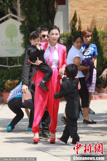 資料圖:張柏芝攜同兩個(gè)兒子Lucas(謝振軒)和Quintus(謝振南)。圖片來源:CFP視覺中國(guó)