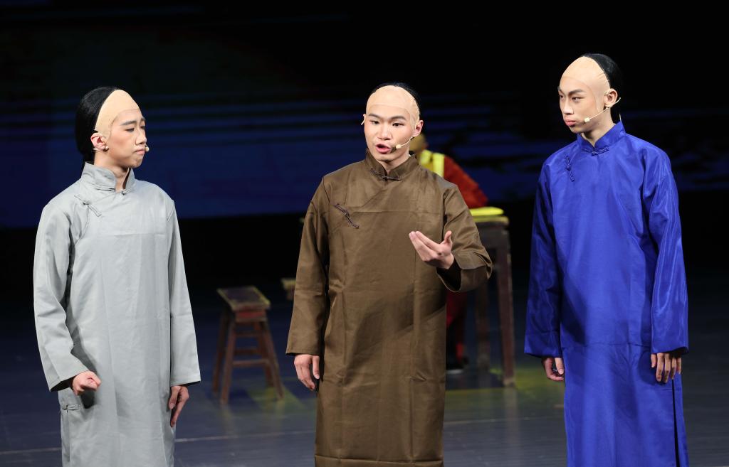 當(dāng)日,中國(guó)人民大學(xué)附屬中學(xué)分校戲劇實(shí)踐課程開展成果展示,高中學(xué)生們?cè)诒本﹪?guó)安劇院演出大型四幕話劇《吶喊》,生動(dòng)演繹了魯迅筆下阿Q、孔乙己、祥林嫂等眾多經(jīng)典形象。