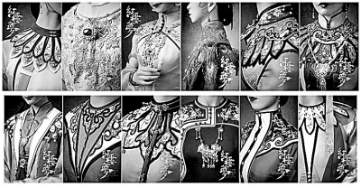 民族舞劇《紅樓夢》中十二金釵人物服裝上的云肩設(shè)計(jì)圖樣 資料圖片