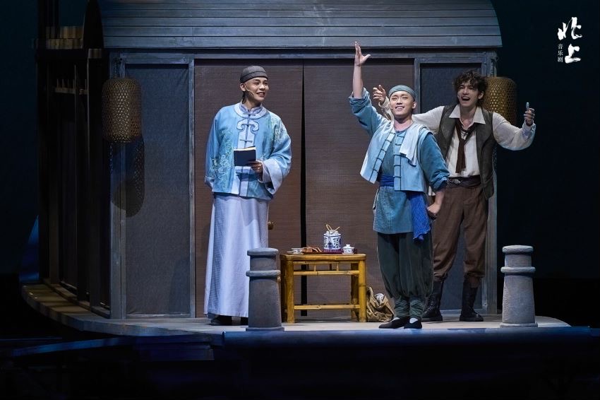 作為北京文化藝術(shù)基金2023年度資助項(xiàng)目、“大戲看北京”展演劇目,音樂劇《北上》由中共北京市委宣傳部、北京市文化和旅游局指導(dǎo),北京廣播電視臺(tái)出品,講述了20世紀(jì)初漕運(yùn)總督府翻譯謝平遙與來華考察的意大利人“小波羅”等一同踏上沿京杭大運(yùn)河北上的旅程,歷經(jīng)磨礪,終獲曙光,在亂世洪流中建立起深厚友誼。