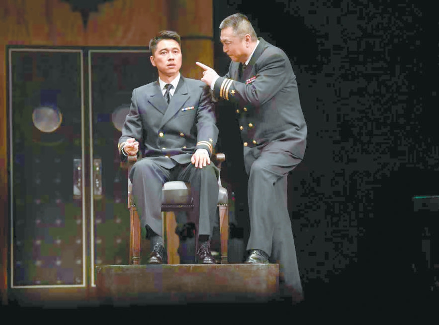 于觀眾而言,戲骨飆戲是《嘩變》格外精彩的看點(diǎn),無(wú)論是制造了“草莓事件”“黃色燃料事件”“電咖啡壺事件”等一系列“鬧劇”的艦長(zhǎng)魁格、以“詭計(jì)”掌控全場(chǎng)節(jié)奏的律師格林渥,還是圖窮匕見、老謀深算的基弗,抑或每一個(gè)各懷目的、性格鮮明的角色,他們之間起伏有致的銜接是對(duì)演員表演功底的極大考驗(yàn)。飾演魁格的馮遠(yuǎn)征把《嘩變》總結(jié)為一場(chǎng)“坐著把戲演好”的挑戰(zhàn),全劇除了格林渥與檢察官可以走動(dòng),其他所有人幾乎坐著演完全程,如何把臺(tái)詞說得詳細(xì)、說得抓人,同時(shí)靠說就把角色塑造到位,是演員需要日日精進(jìn)的功課,也是觀眾愿意一再為之奔赴而來(lái)的重要理由。