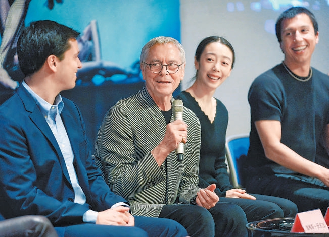 編舞大師諾伊梅爾(左二)來到國(guó)家大劇院。 北京日?qǐng)?bào)記者 方非攝