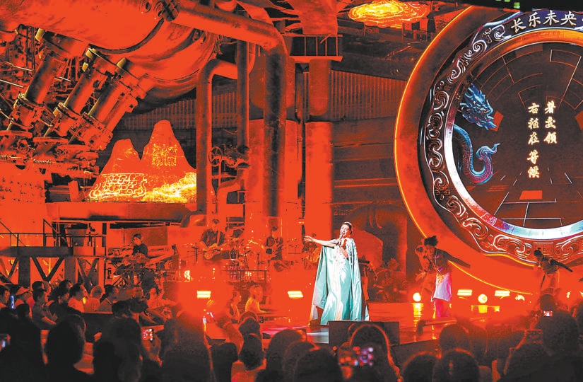 “在這里唱歌,能感受到歷史與未來的雙重回響?!毖莩鼋Y(jié)束后,常思思感慨道。她透露,為了適應(yīng)三高爐特殊的聲場環(huán)境,團(tuán)隊(duì)專門調(diào)整了電聲樂隊(duì)與弦樂團(tuán)的配器編制,讓音樂在工業(yè)空間中產(chǎn)生更具張力的共鳴。一夜歡歌,常思思用藝術(shù)的柔美與工業(yè)的粗糲對話,在首都北京留下獨(dú)特的文化記憶,“藝術(shù)家應(yīng)當(dāng)成為連接不同時空的橋梁,我們讓鋼鐵聽見了歌聲,也讓歌聲記住了鋼鐵?!?/p>