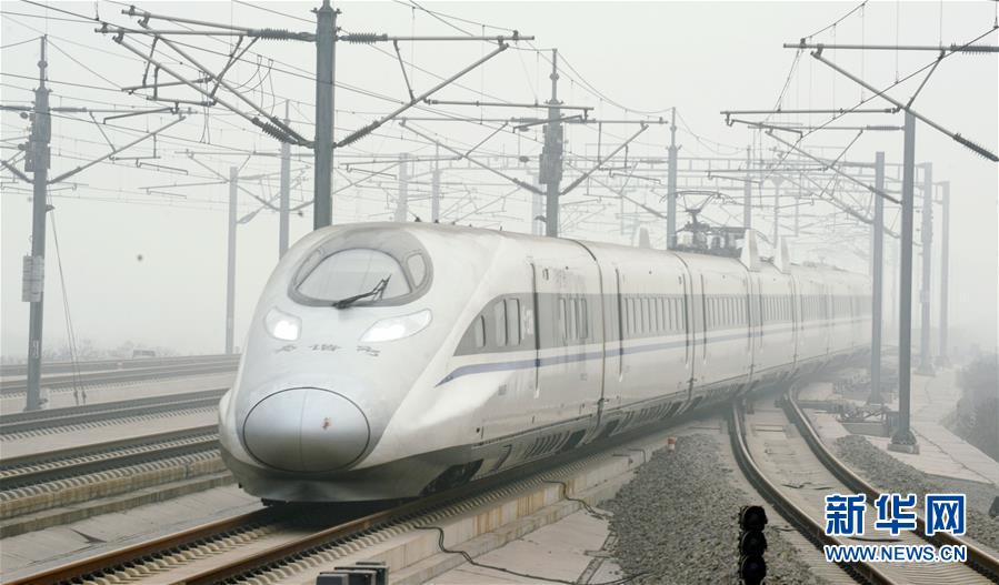 一輛動車組列車駛離石家莊火車站(1月9日攝)。 1月10日零時起,全國鐵路實行新的列車運行圖,增開旅客列車285.5對,其中增開動車組列車281.5對。運行圖調整后,全國鐵路開行旅客列車總數(shù)達到3142對,其中動車組列車1980.5對。新華社記者 牟宇 攝