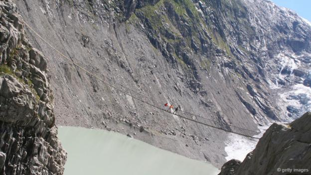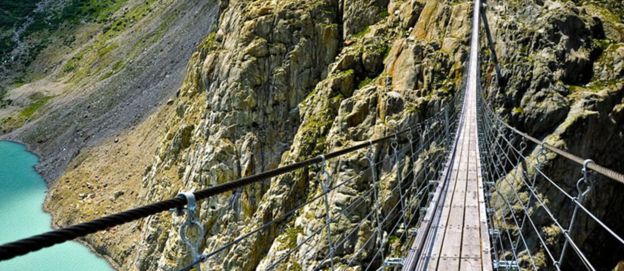 在所有懸索橋中,最令人驚心動魄的應(yīng)該就是特里夫特懸索橋了。該橋長170米,跨伯爾尼高地的特里夫特斯湖,湖面與橋之間無任何連接,湖光山色冰川美景盡收眼底,每年吸引著成千上萬名渡橋者前來游覽。
