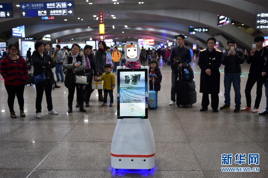2月1日,旅客們在廣州南站與智能機器人“小璐”對話。當日,一臺名叫“小璐”的智能機器人亮相廣州南站,吸引了大批旅客的圍觀,大家紛紛嘗試與“小璐”對話,向她咨詢列車時刻、購票信息、天氣情況等問題,“小璐”不僅可以用甜美的女聲一一作答,還可以在接收到語音指令后,為旅客“唱歌”和“跳舞”。據(jù)了解,使用智能機器人服務旅客是廣州南站在今年春運中的新嘗試,如果試用效果良好,今后有望在車站中看到更多智能機器人的身影。新華社記者 梁旭 攝