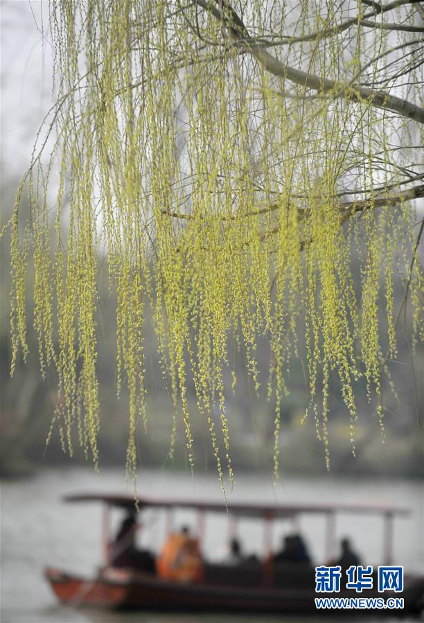 3月6日,游客在揚州瘦西湖賞花。隨著氣溫升高,江蘇揚州市瘦西湖景區(qū)楊柳吐綠,繁花似錦,吸引許多中外游客前來踏春賞花。 新華社發(fā)(孟德龍 攝)