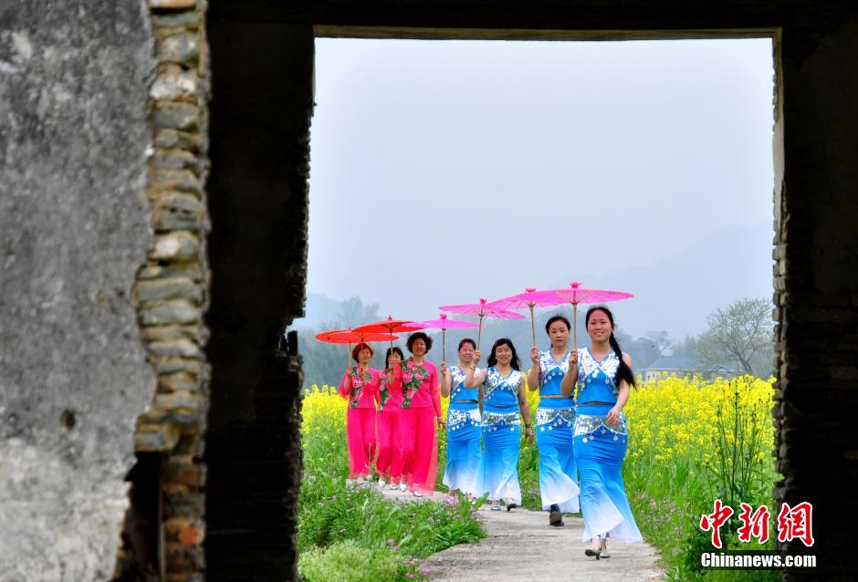 3月20日,江西省德興市??阪?zhèn)杜村婦女在田間花?!白咝恪?。當(dāng)日,江西德興市??阪?zhèn)杜村一批家庭婦女以千畝油菜花海為舞臺(tái),展示自己的才藝形象,希望宣傳家鄉(xiāng)的自然生態(tài)與人文歷史,擴(kuò)大旅游知名度和影響力。德興市??阪?zhèn)杜村交通便利,自然風(fēng)光優(yōu)美,村內(nèi)有歷史古跡和名木古樹(shù)。 胡敦煌 攝