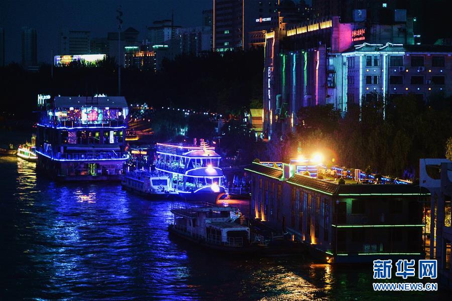 6月14日,一艘游輪從黃河蘭州段中山橋下穿過。自6月12日起,蘭州黃河游輪夏季夜航航線正式開通。據(jù)了解,作為黃河蘭州段水上旅游重點(diǎn)線路,該航線由蘭州市城關(guān)區(qū)蘭州港碼頭和白塔山碼頭始發(fā),每晚20時(shí)起開行,全程約6公里,運(yùn)行時(shí)長50分鐘左右。游客可以乘坐豪華游輪欣賞黃河夜景,感受蘭州黃河風(fēng)情線別樣魅力。新華社記者 陳斌 攝