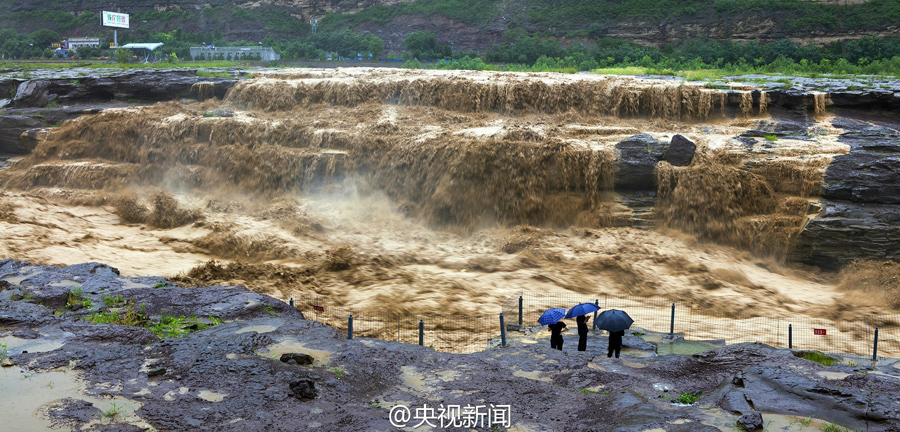 受上游強(qiáng)降雨和水庫放水影響,最近幾天,黃河壺口瀑布迎來伏汛,最大水流量達(dá)到每秒2600立方米左右,濁流滾滾奔騰而下,氣勢磅礴?。ㄑ胍曈浾呃钪?文豪)