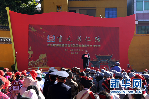 新華網(wǎng)昆明12月13日電(記者 韓攀)12月12日,“重走長(zhǎng)征路”紅色旅游主題活動(dòng)首發(fā)團(tuán)云南昆明交接儀式在尋甸柯渡丹桂村紅軍長(zhǎng)征柯渡紀(jì)念館舉行。本次主題活動(dòng)由國(guó)家旅游局主辦,是在中國(guó)工農(nóng)紅軍長(zhǎng)征勝利80周年之際,通過(guò)紀(jì)念紅軍長(zhǎng)征歷史、緬懷先烈,宣傳長(zhǎng)征精神,推廣紅色旅游線路,同時(shí)充分展示長(zhǎng)征沿線地區(qū)旅游業(yè)及經(jīng)濟(jì)發(fā)展成就。