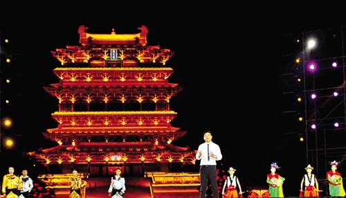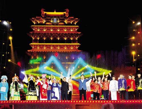 作為主場(chǎng)的運(yùn)城市,用絳州鼓樂這一傳承千年的世界級(jí)非物質(zhì)文化遺產(chǎn)開場(chǎng),電視連續(xù)劇《三國(guó)演義》關(guān)公扮演者陸樹銘威嚴(yán)亮相,以關(guān)公形象表達(dá)運(yùn)城歷史傳統(tǒng)文化。