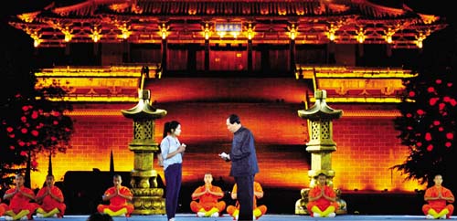 作為客場(chǎng)競(jìng)演城市,我市節(jié)目精心策劃,抓住了城市的靈魂,以“心靈之舟”為主題思想,多角度展示了我市的文化旅游特色。在第一階段展示中,高清影視資料向觀眾推介了五臺(tái)山、雁門關(guān)等大美山河,吊足了觀眾的味口。4名原生態(tài)歌手和20名小朋友齊唱《美麗忻州心靈之舟》,營(yíng)造出寧靜的開場(chǎng)氛圍。緊接著,毛澤東特型演員張瑞奇的出現(xiàn),將全場(chǎng)帶入第一個(gè)高潮,毛澤東與五臺(tái)山的歷史淵源點(diǎn)燃紅色激情,我市既展示出了名山秀水的妖嬈,又漂亮地打出了紅色旅游這張牌。宣講“忻州,我們的心靈之舟”這一主題的同時(shí),更是將凈化心靈、激蕩心靈、洗滌心靈、愉悅心靈、陶冶心靈這5大內(nèi)容融入到節(jié)目中,完整地傳達(dá)“我們的忻州,是蕩滌人們心靈的忻州,是放飛人們夢(mèng)想的忻州”這一主題思想。第一階段競(jìng)演結(jié)束,鳳凰網(wǎng)點(diǎn)評(píng)嘉賓將支持票投給了忻州,因?yàn)樾弥菔莻€(gè)令她動(dòng)心的地方。就連著名表演藝術(shù)家馬德華先生也被忻州的名山秀水所感染,他激情點(diǎn)評(píng):“忻州令人魂?duì)繅?mèng)繞。”圖為市委常委、常務(wù)副市長(zhǎng)趙志堅(jiān)傾情講述,撼動(dòng)全場(chǎng)第二階段的展演,圍繞“產(chǎn)業(yè)轉(zhuǎn)型升級(jí)和旅游脫貧致富”,我市以建設(shè)蘆芽山為故事背景,蘆芽山掌門常洪睿講述了他致力打造智慧化旅游景區(qū)的故事。
