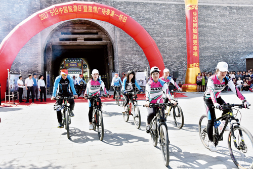 活動中,旅行社代表發(fā)言,旅行社導游集體宣誓,旅行社負責人和導游集體簽署文明旅游承諾書。啟動了捷安特騎行隊騎游??h文化藝術館舉辦了“激情廣場表演——懷舊專場”演出,節(jié)目有舞蹈、獨唱、晉劇選段、吉他彈奏、勁舞、歌伴舞、詩朗誦、水兵舞、旗袍秀等,贏得現(xiàn)場觀眾陣陣熱烈的掌聲,將“5·19中國旅游日”宣傳活動推向了高潮。圖為捷安特騎行隊出發(fā)騎游(石俊文 攝影報道)
