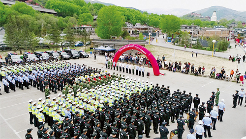 為了擦亮佛教圣地五臺山這個(gè)旅游窗口,打造形象五臺山,忻州市公安局部署從今年5月1日起至10月31日,在五臺山風(fēng)景區(qū)開展流動人口暨治安秩序大整治(即兩項(xiàng)整治)工作,從秩序安全、流動人口管理、治安、交通和消防等5大類33個(gè)層面對五臺山風(fēng)景區(qū)進(jìn)行集中整治。時(shí)值“兩項(xiàng)整治”進(jìn)入高潮之際,五臺山迎來了“5.19”中國旅游日,忻州市公安局黨委將此次“5.19”治安工作作為“兩項(xiàng)整治”的第一次大考,當(dāng)作首次檢驗(yàn)整治機(jī)制、設(shè)施、效果和隊(duì)伍的絕佳機(jī)會。為此,市公安局從市局、五臺山風(fēng)景區(qū)、五臺縣、繁峙縣、原平市、代縣等地和武警、消防、保安公司抽調(diào)精干警力和安保人員組成執(zhí)勤隊(duì)伍。18日下午,市公安局在五臺山景區(qū)舉行戰(zhàn)前動員會。動員指出:省、市黨委政府高度重視五臺山工作,忻州公安要提高政治站位抓安保;“5.19”安保是對全市公安機(jī)關(guān)戰(zhàn)斗力的一次綜合檢驗(yàn),是十九大前的一次安保實(shí)兵演練,要堅(jiān)定必勝信心抓安保;此次安保意義重大,要發(fā)現(xiàn)差距,總結(jié)經(jīng)驗(yàn),固化機(jī)制,為五臺山形成安全穩(wěn)定暢通有序的長效安保機(jī)制打下基礎(chǔ)。