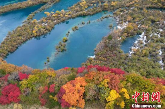 10月23日,深秋時節(jié),四川九寨溝如同油畫一般,漫山遍野的紅葉絢麗多彩,與清澈見底的湖水交相輝映,美輪美奐,“秋日童話”正上演。 張浪 攝