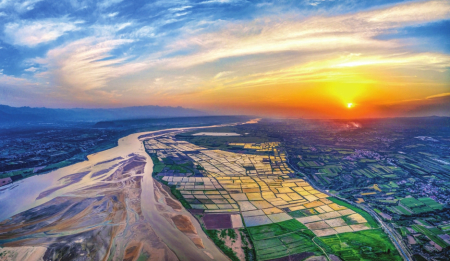 5月20日,垣曲縣古城鎮(zhèn)黃河庫區(qū)邊的曙猿灣村,波濤滾滾的黃河、生機勃勃的農(nóng)田,繪就一幅秀美的生態(tài)畫卷。