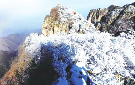 冬天的五老峰景區(qū),如果遇到下雪天,會(huì)有難得一見的雪后云海景觀。從高空俯瞰,群山峰巒迭起,在洶涌的云海波濤中若隱若現(xiàn),頗為壯觀;被白雪覆蓋的各種林木,色彩各異,美不勝收。