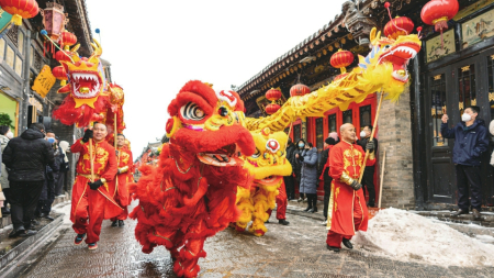 嗨冰雪,覓美食,逛冬景……在大同,除了人們熟知的“夏清涼”,還有“冬康養(yǎng)”。流光溢彩耀平城、魅力冰雪慶豐年等地方特色濃郁、群眾參與度高的文化活動(dòng),為人民傾情呈現(xiàn)趣味冰雪和熱鬧年俗、經(jīng)典美食與北國風(fēng)情有機(jī)串聯(lián)的文旅盛宴。如果是春節(jié)期間來到古城,還會(huì)與具有獨(dú)特民俗風(fēng)格的演藝活動(dòng)不期而遇。鄉(xiāng)土氣息十足的街頭吆喝,民俗社火演藝,扭秧歌、劃旱船、背鐵棍、南北獅爭霸賽、山西民歌、八音會(huì)、晉劇表演等,讓人目不暇接。正月里的威風(fēng)鑼鼓、秧歌、旱船等傳統(tǒng)民俗節(jié)目,讓游客大飽眼福。