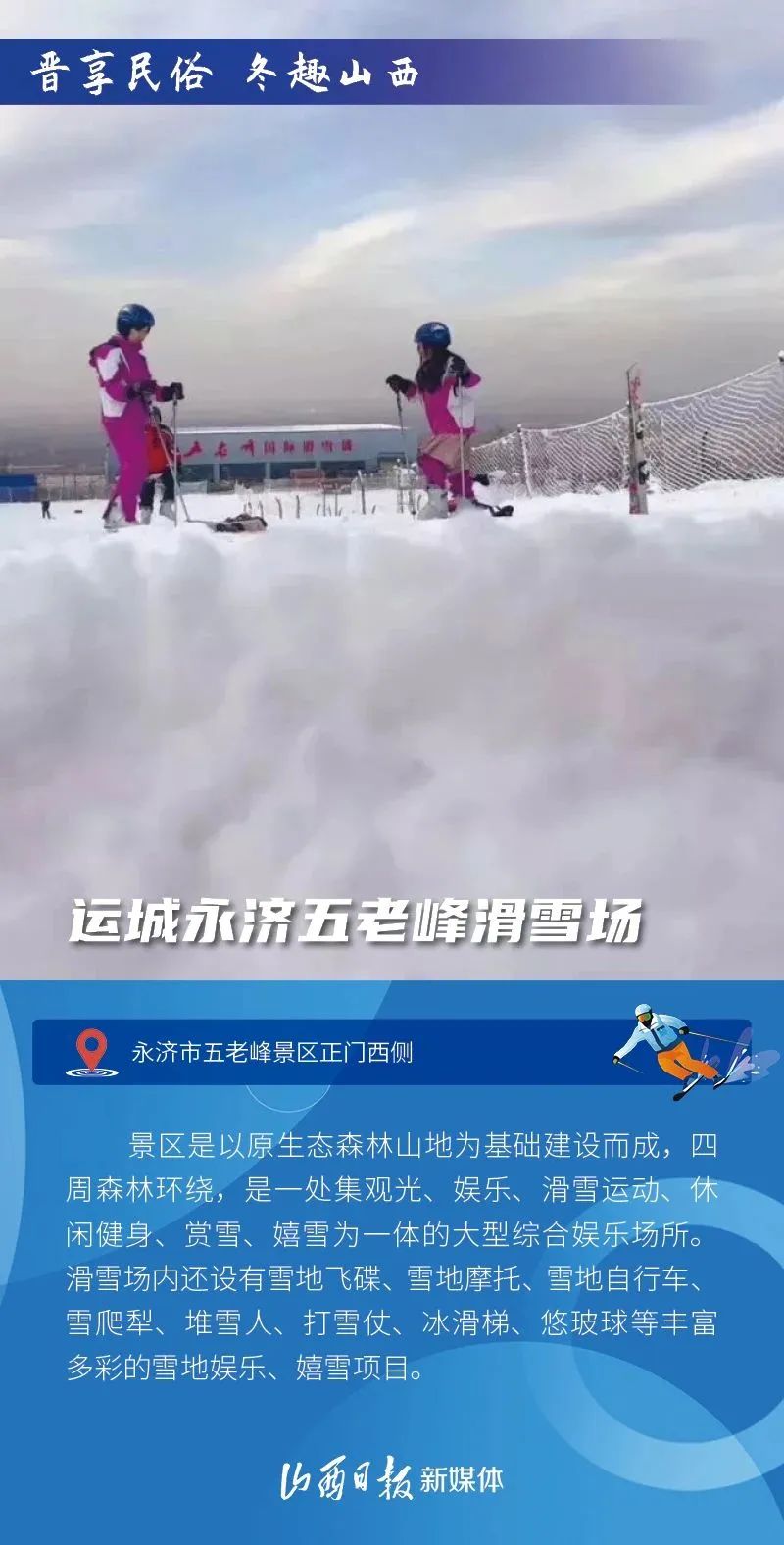 迎來新雪季,省內不少滑雪場陸續(xù)開門迎客,部分進入淡季的山水景區(qū)也開始“轉戰(zhàn)”冰雪項目,開啟冰雪狂歡。這個冬天,做好準備,跟隨山西省文化和旅游廳發(fā)布的“十大滑雪目的地”,開啟一場馭雪凌風之旅吧!