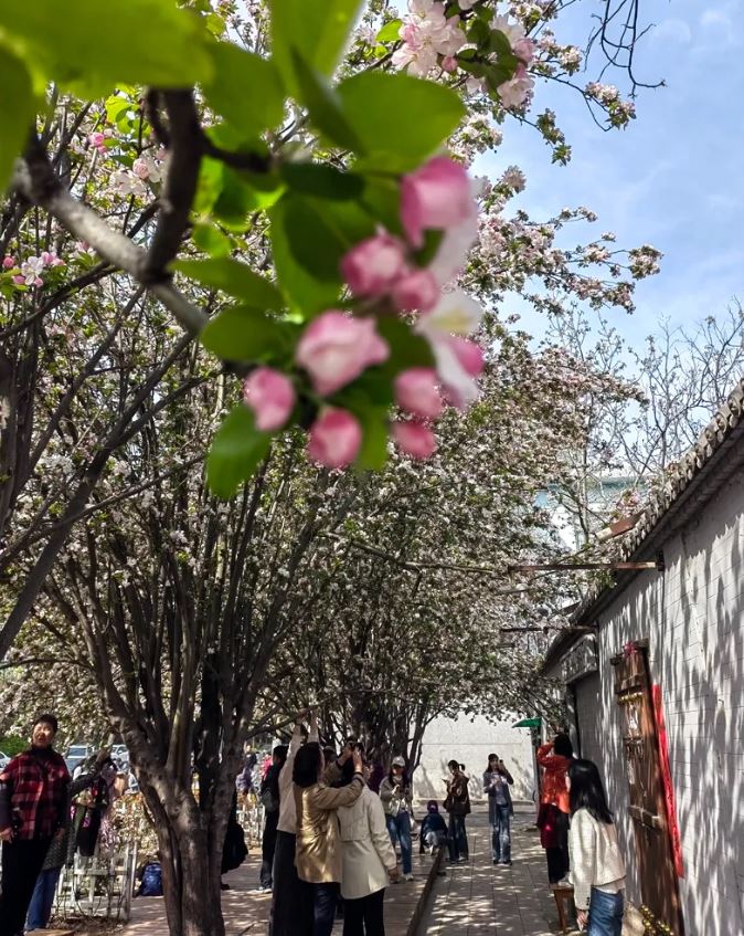 ▲杏林七條的海棠花開(kāi)得正盛