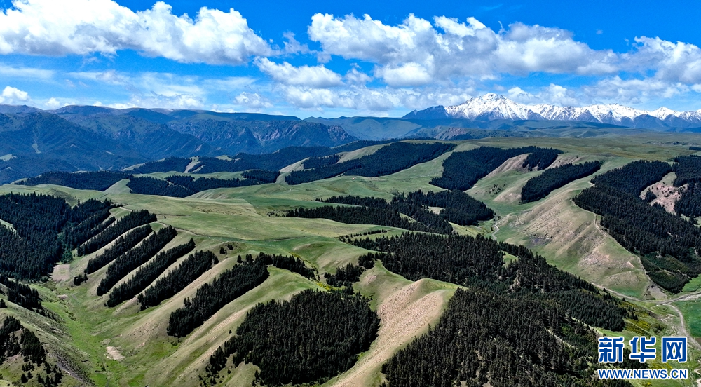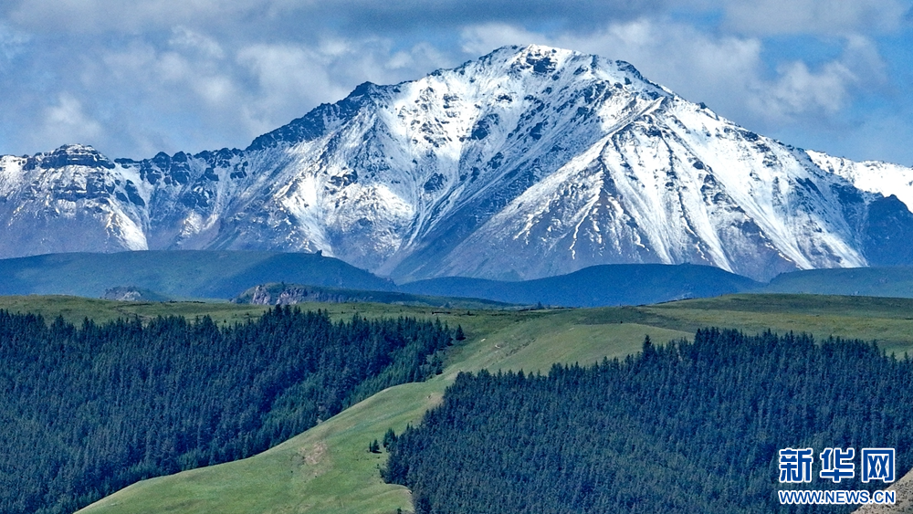 盛夏時節(jié),祁連山國家公園甘肅省張掖市肅南裕固族自治縣康樂鎮(zhèn)段,湛藍(lán)的天空飄著朵朵白云,映襯著巍峨的雪峰和碧綠的大地,牛羊在青草中浮動,像一把珍珠撒在了綠色的絨毛毯上,勾勒出一幅天然秀麗的生態(tài)畫卷。新華網(wǎng)發(fā)(王將 攝)