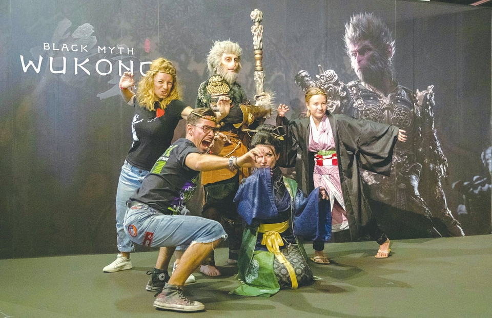 8月22日,人們在德國2024年科隆國際游戲展《黑神話:悟空》拍照區(qū)拍照。