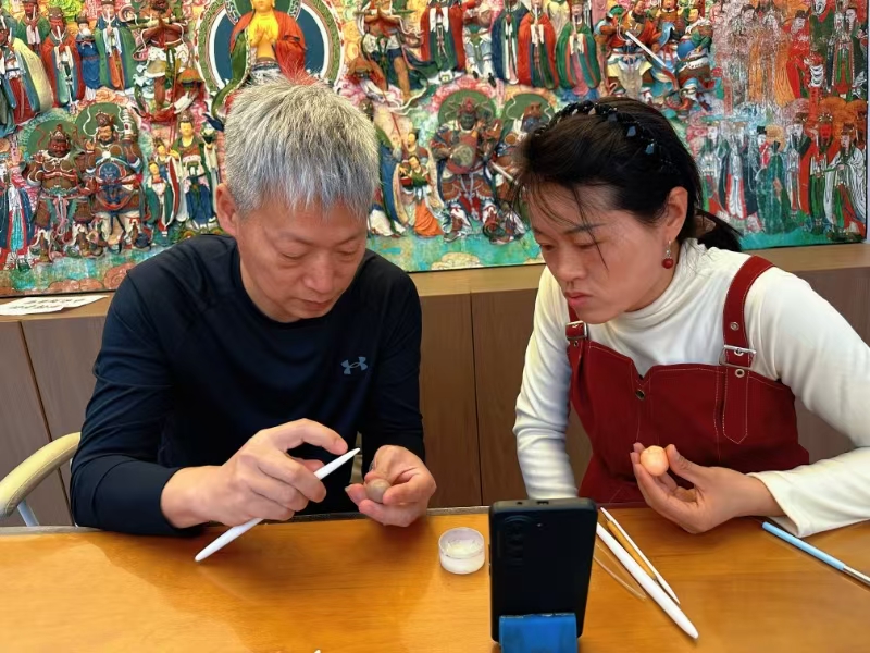 “在這條街上,聚集了很多和我一樣的手藝人。”大海面塑所在的關(guān)帝廟北巷文創(chuàng)街上,一家家非遺店鋪林立——葫蘆烙畫店鋪內(nèi),忻州市忻府區(qū)葫蘆烙畫非物質(zhì)文化遺產(chǎn)代表性傳承人李云珍正手拿烙鐵在葫蘆上創(chuàng)作《八駿圖》;“草木染”非遺體驗店里,有游客在體驗扎染的樂趣;鋦藝里,游客圍在忻州市忻府區(qū)鋦瓷藝術(shù)非物質(zhì)文化遺產(chǎn)代表性傳承人王克劍身邊,看一件破碎的瓷器如何經(jīng)過他的雙手重生……
