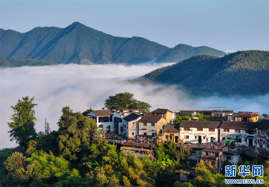 當(dāng)日,雨后初霽的安徽省黃山市休寧縣溪口鎮(zhèn)木梨硔村出現(xiàn)磅礴壯美的云海景觀。連綿的群山與漂浮的云海環(huán)抱著依山而建的徽派古村落,勾勒出一幅絕妙的秋日水墨畫(huà)卷。新華網(wǎng)發(fā)(施亞磊 攝)