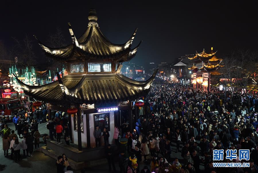 壯觀!元宵夜南京秦淮燈會游人如潮