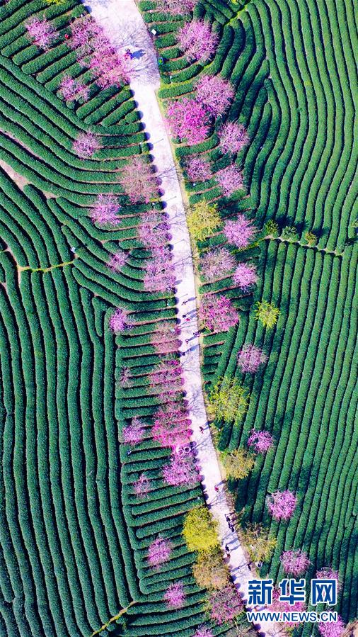 這是2月27日在福建省龍巖市永福鎮(zhèn)航拍的茶園和綻放的櫻花。 近日氣溫轉(zhuǎn)暖,位于福建省龍巖市永福鎮(zhèn)的15萬株櫻花競相綻放。新華社發(fā)(李藝爽 攝)